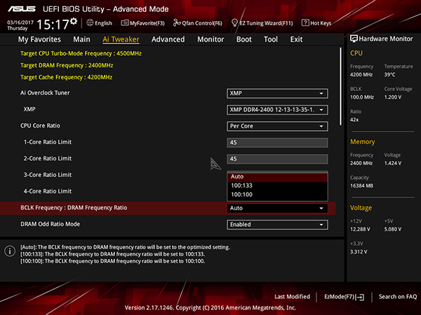 В настройках Ai Tweaker можно также задавать коэффициент BCLK Frequency:DRAM Frequency (100:100, 100:133) и настроить работу модулей памяти.