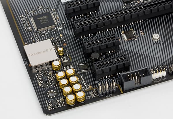 Аудиоподсистема платы Asus Strix H270F Gaming имеет традиционное для плат Asus маркетинговое название SupremeFX. Как и на всех новых платах семейства Asus ROG, основана аудиоподсистема на новом HDA-аудиокодеке Realtek ALC1220, который закрыт металлических кожухом. Все элементы аудиотракта изолированы на уровне слоев PCB от прочих компонентов платы и выделены в отдельную зону. Аудиотракт в данном случае абсолютно такой же, как и на плате Asus Strix B250F Gaming — правда, результаты тестирования немного хуже.