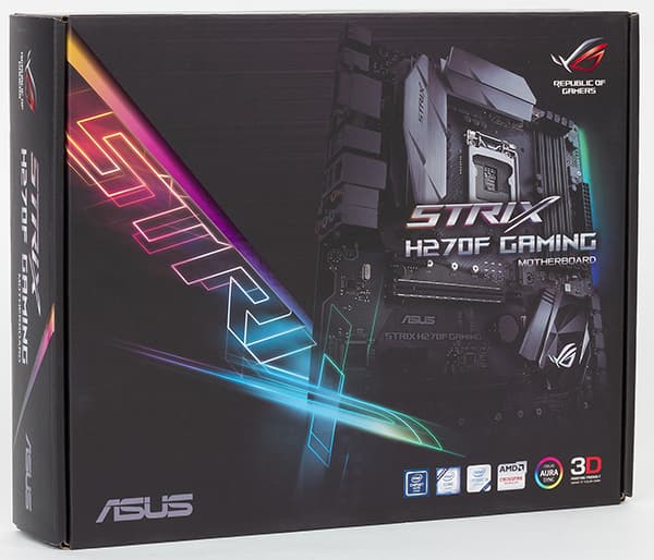 Плата Asus Strix H270F Gaming поставляется в компактной по размерам коробке, типичной для серии Strix, на которой, традиционно расписаны все особенности платы.