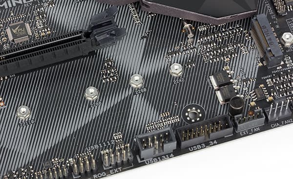 Как и на большинстве плат семейства Asus ROG, есть специальный разъем ROG Extension, который предназначен для подключения различных ROG-аксессуаров (приобретаются отдельно).