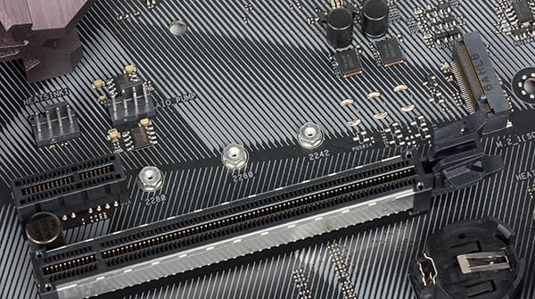 Из двух разъемов M.2 один (M.2_1) позволяет устанавливать накопители типоразмера 2242/2260/2280 и поддерживает устройства SATA и PCIe. Однако для PCIe-устройств поддерживается только режим PCIe 3.0 x2. Для реализации этого разъема используется один порт SATA 6 Гбит/с и два порта PCIe 3.0.