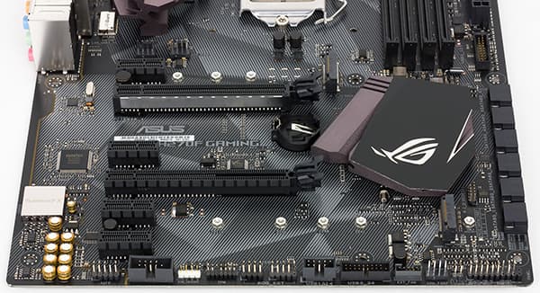 В чипсете Intel H270 больше доступных портов PCIe 3.0, поэтому на плате Asus Strix H270F Gaming слоты PCI Express 3.0 x1 и слот PCI Express 3.0 x4 не разделяются друг с другом и оба разъема M.2 поддерживают режим PCIe 3.0 (хотя один разъем поддерживает только режим PCIe 3.0 x2).