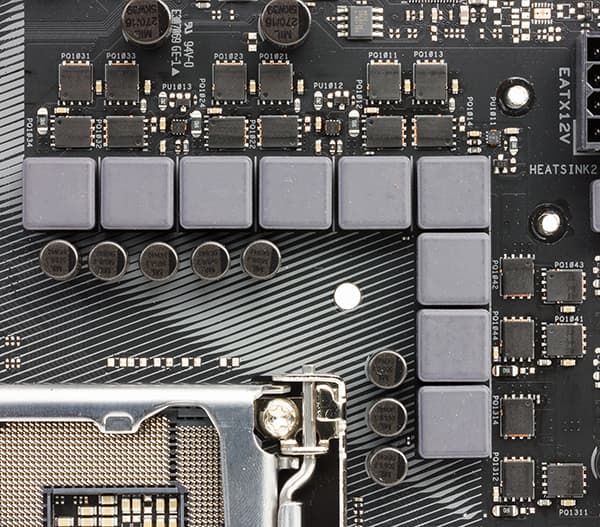 Регулятор напряжения питания процессора 9-канальный и построен на базе PWM-контроллера Digi+ VRM c маркировкой ASP1400. Cами каналы питания построены с использованием MOSFET-транзисторов 4C09B и 4С06B компании On Semiconductor. Регулятор напряжения питания точно такой же, как на плате Asus Strix B250F Gaming.