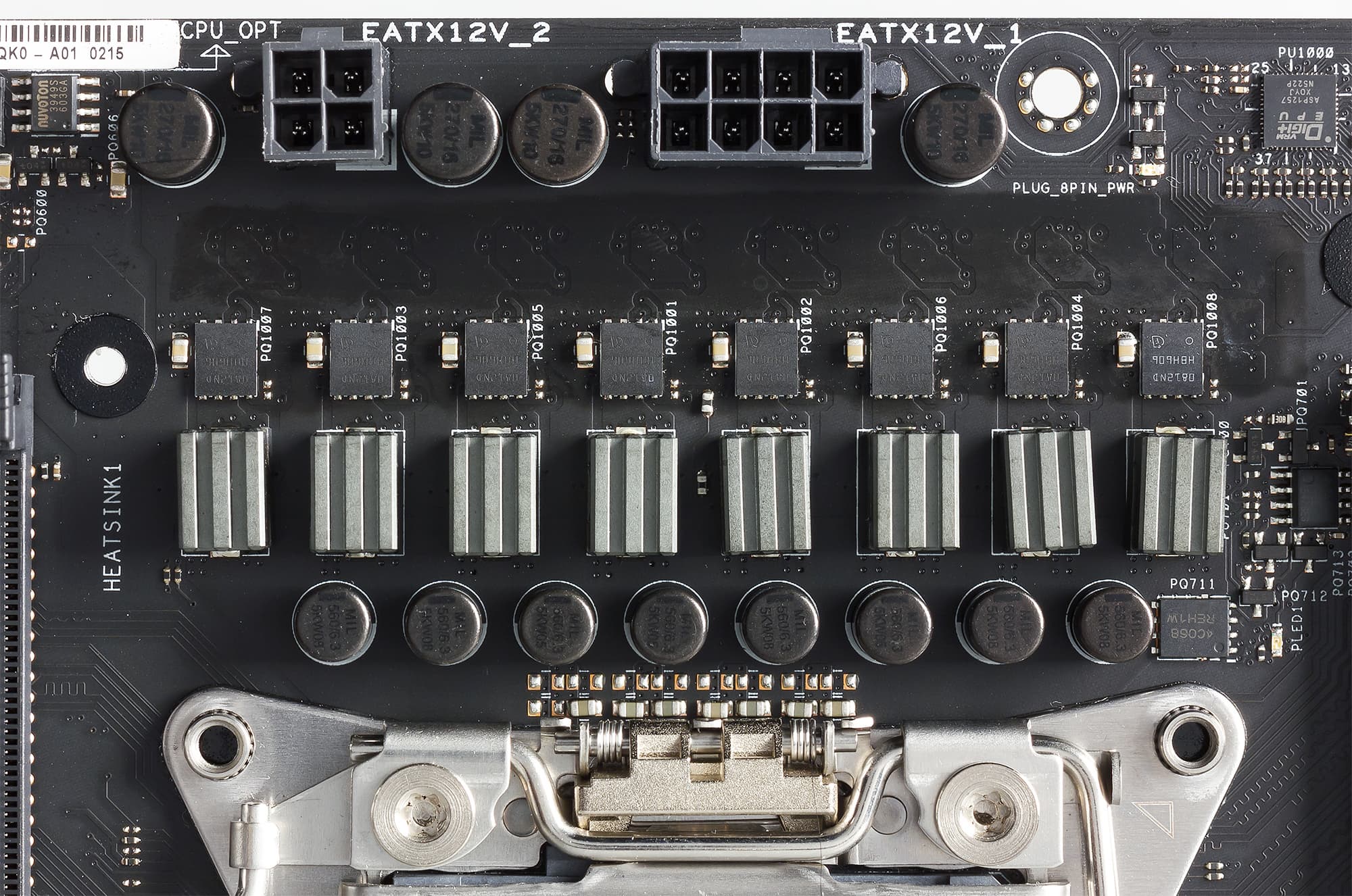 Регулятор напряжения питания процессора на плате Asus Strix X99 Gaming точно такой же, как и на плате Asus X99-Pro. Он является 8-канальным и основан на PWM-контроллере Digi+ VRM c маркировкой ASP1257.