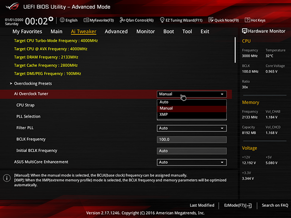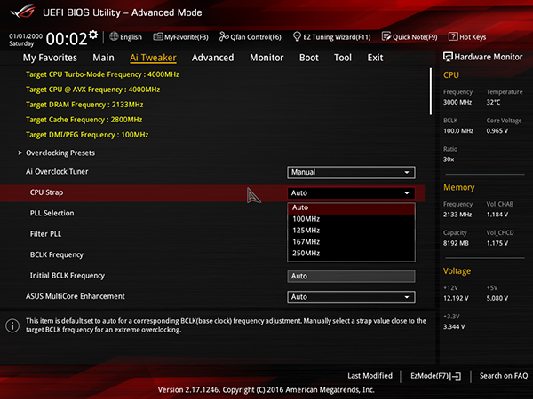 Можно менять и частоту BCLK, но для этого прежде нужно задать для параметра Ai Overclock Tuner значение Manual или XMP.