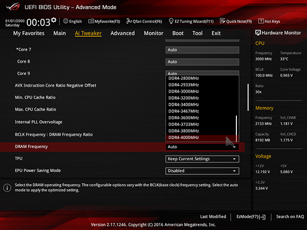 Что касается памяти, то в UEFI BIOS можно выбрать память вплоть до DDR4-4000.
