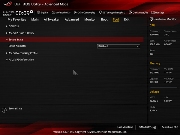 Появился в UEFI BIOS и такой инструмент, как Secure Erase, который предназначен для SSD накопителей (возвращение SSD к исходному состоянию).