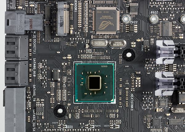 Еще один чипсетный порт USB 3.0 (шестой порт) используется для подключения USB-хаба ASMedia ASM1074. Вообще, USB-хаба ASMedia ASM1074 дает на выходе четыре порта USB 3.0, но в случае платы Asus Strix X99 Gaming от этого хаба разведено только три порта USB 3.0, которые выведены на заднюю панель платы.