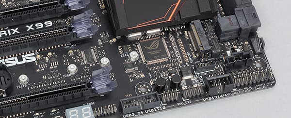Все перечисленные выше особенности платы Asus Strix X99 Gaming имеются и на плате Asus X99-Pro. Теперь рассмотрим те дополнительные особенности, которые есть на плате Asus Strix X99 Gaming и которых нет на плате Asus X99-Pro.