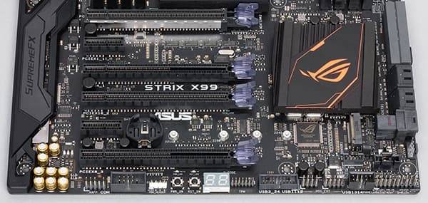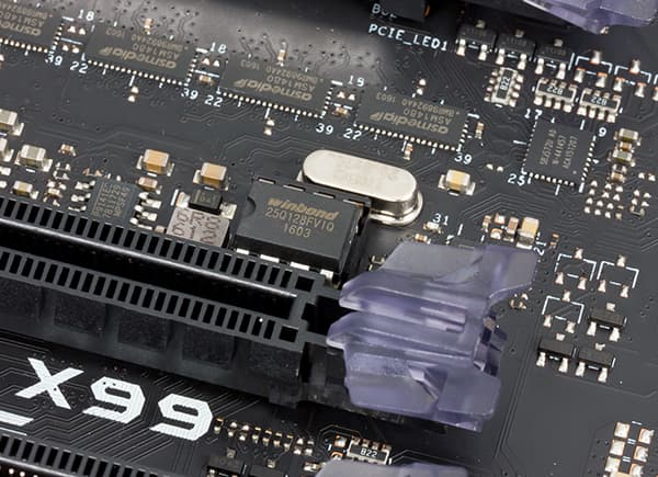 Конкретные режимы работы слотов зависят от того, какой процессор устанавливается на плате. Напомним, что процессоры Haswell-E и Broadwell-E существуют с 40 линиями PCI Express 3.0 и с 28 линиями.