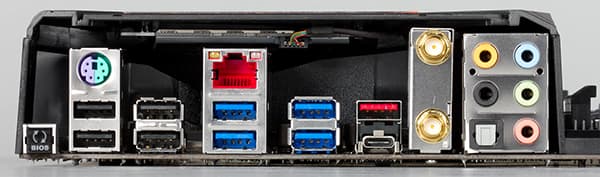 | Разъемы на задней панели | 1× USB 3.1 (Type-A) 1× USB 3.1 (Type-C) 4× USB 3.0 4 × USB 2.0 1 × RJ-45 1 × S/PDIF (оптический, выход) 1 × PS/2 5 × аудиоразъемов типа миниджек |