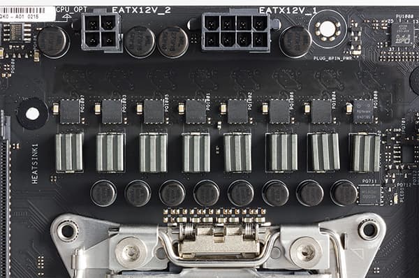 Как и большинство плат, модель Asus Strix X99 Gaming имеет 24-контактный и 8-контактный разъемы для подключения блока питания. Имеется и дополнительный 4-контактный разъем.