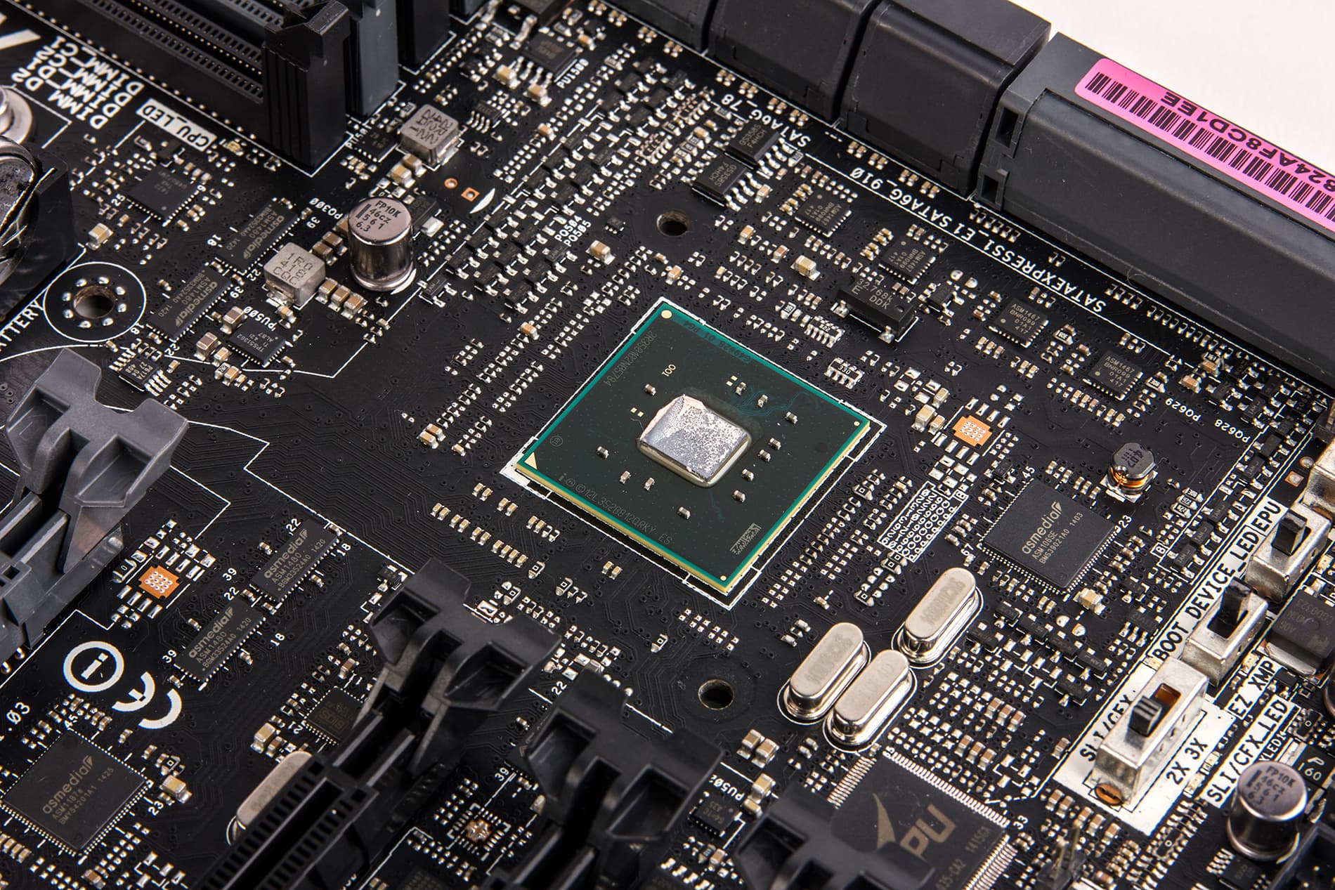 Оговоримся, что компания Asus не прилагает схемы подключения на плате всех разъемов и контроллеров к чипсету, а потому, тот факт, что именно сетевые контроллеры и слоты PCI Express 2.0 x1 подключены к коммутатору ASMedia ASM1187e, это лишь наше предположение.
