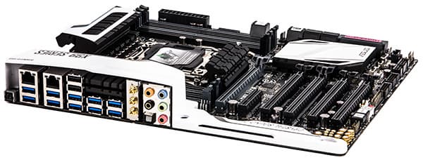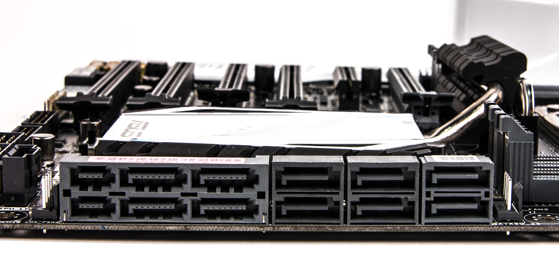 | SATA-разъемы | 10 × SATA 6 Гбит/с (чипсет) 2 × SATA 6 Гбит/с (контроллера ASMedia ASM106SE) 1 × SATA Express (с двумя портами SATA 6 Гбит/с от чипсета) 1 × SATA Express (с двумя портами SATA 6 Гбит/с от контроллера ASMedia ASM106SE) |