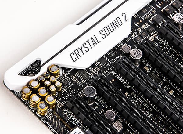 Аудиоподсистема платы Asus X99-Deluxe включает в себя популярный HDA-аудиокодек Realtek ALC1150, а на задней панели платы предусмотрено пять аудиоразъемов типа миниджек (3,5 мм) и один оптический разъем S/PDIF (выход). Все элементы аудиотракта изолированы на уровне PCB от других элементов платы.