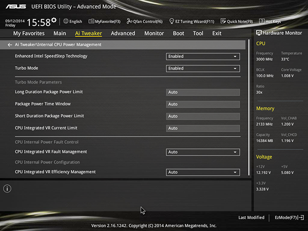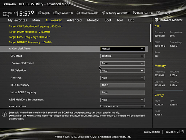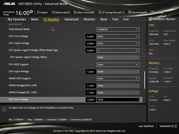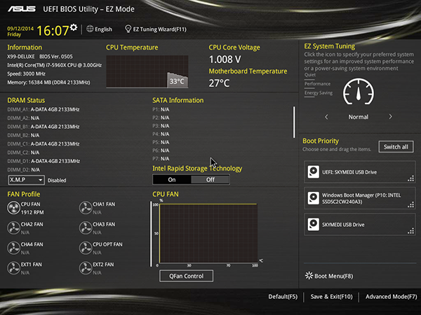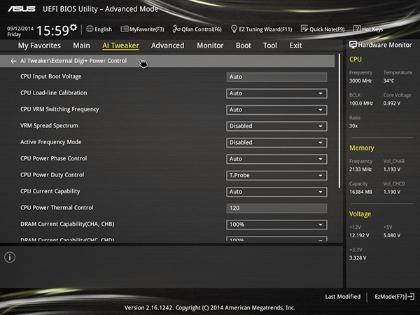 Если говорить об UEFI BIOS, то на плате Asus X99-Deluxe он по интерфейсу и возможностям очень похож на UEFI BIOS, реализованный на платах Asus c чипсетом Intel Z97. Конечно, с учетом специфики чипсета Intel X99 есть и отличия, но в целом все очень похоже.