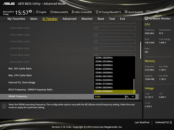 Что касается памяти, то в UEFI BIOS можно выбрать режим вплоть до DDR4-4000.