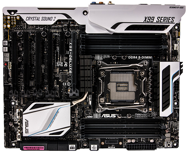 Итак, давайте поближе познакомимся с топовой платой Asus X99-Deluxe.