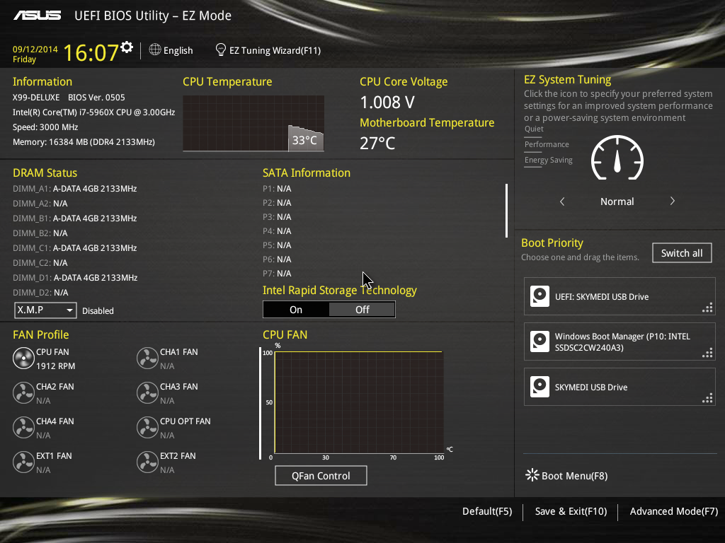 UEFI BIOS имеет два режима отображения: упрощенный EZ-Mode и Advanced Mode. Настройка системы и ее разгон возможен только в режиме Advanced Mode.