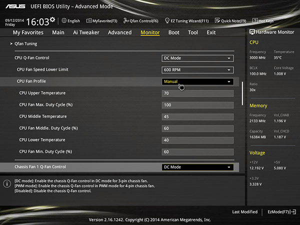 Кроме того, UEFI BIOS позволяет производить настройку скоростного режима подключенных к плате вентиляторов.