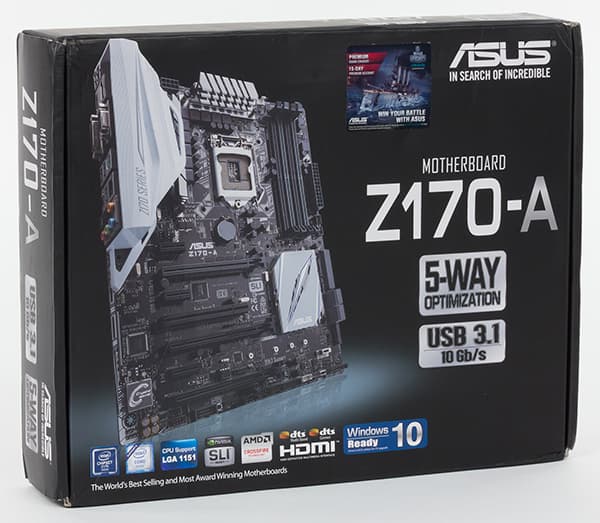 Продолжая наши регулярные обзоры новых материнских плат, в этой статье мы рассмотрим модель Z170-A компании Asus, которую можно описать как недорогую (для решений на чипсете Intel Z170) плату для производительного компьютера с оптимальным сочетанием цены и функциональности.