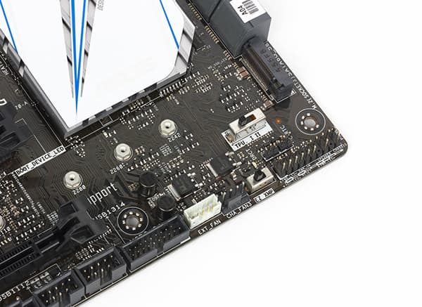 Помимо этого, для создания эффективной системы теплоотвода на плате предусмотрено пять четырехконтактных разъемов для подключения вентиляторов (включая и вентилятор кулера процессора), а также один специализированный четырехконтактный разъем для подключения вентилятора системы водяного охлаждения. Традиционно, скорость любого корпусного вентилятора, вентилятора кулера процессора и вентилятора системы водяного охлаждения можно настраивать либо через UEFI BIOS, либо через утилиту Fan Xpert 3.