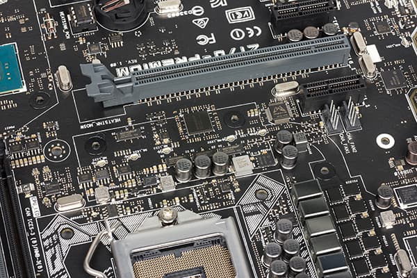 Два первых (от процессорного разъема) слота с форм-фактором PCI Express x16 реализованы с использованием 16 линий PCI Express 3.0 процессора Skylake, которые с использованием мультиплексоров/демультиплексоров группируются либо в один порт PCI Express 3.0 x16, либо в два порта PCI Express 3.0 x8. То есть если задействуется только один слот с форм-фактором PCI Express 3.0 x16 (ближайший к процессорному разъему), то он будет работать на скорости x16, а если одновременно оба слота, то они будут функционировать на скорости x8.