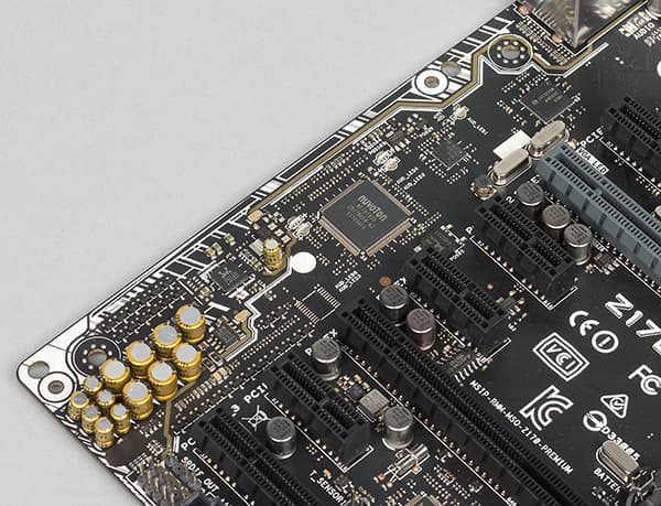 Для реализации четырех портов USB 3.1 на плате используются один двухпортовый контроллер ASMedia ASM1142 и один двухпортовый контроллер Intel Thunderbolt 3.0 (чип Intel DSL6540) (кодовое наименование Intel Alpine Ridge). Каждый контроллер USB 3.1 подключен к двум чипсетным портам PCIe 3.0.