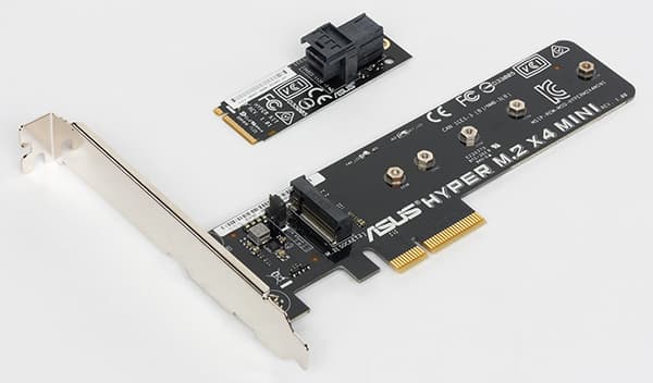 Это, что называется, стандартная комплектация для плат Asus топового сегмента. Но в варианте платы Asus Z170-Premium этим не ограничивается. Дополнительно в комплект поставки входит плата Asus Hyper M.2 x4 Mini, которая представляет собой переходник с разъема PCI Express 3.0 x4 на разъем M.2. Также имеется и переходник Asus Hyper Kit. Это отдельная карта расширения, вставляемая в разъем M.2, а на ней имеется разъем SFF-8639 (Mini-SAS HD), к которому подключается соответствующий кабель при использовании SAS-накопителя.
