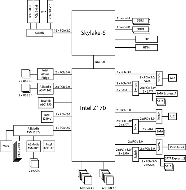 Блок-схема платы Asus Z170-Premium показана на рисунке.