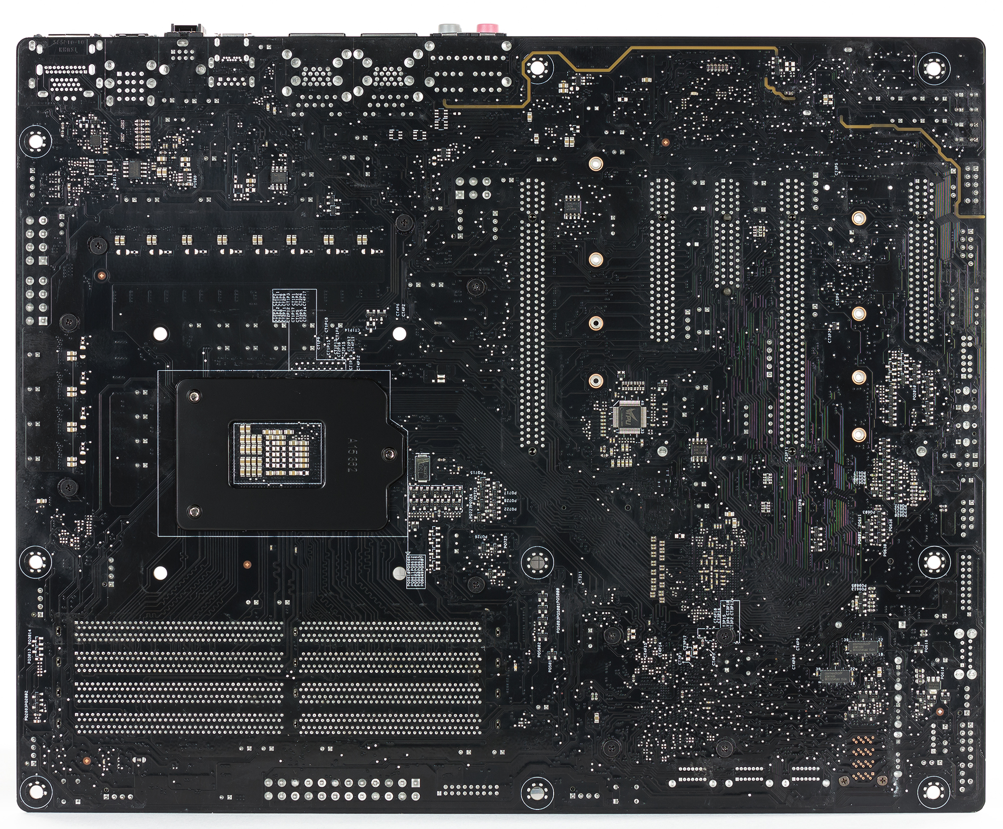 Плата Asus Z170-WS выполнена в форм-факторе ATX (305×244 мм), а для монтажа платы предусмотрены девять стандартных отверстий.