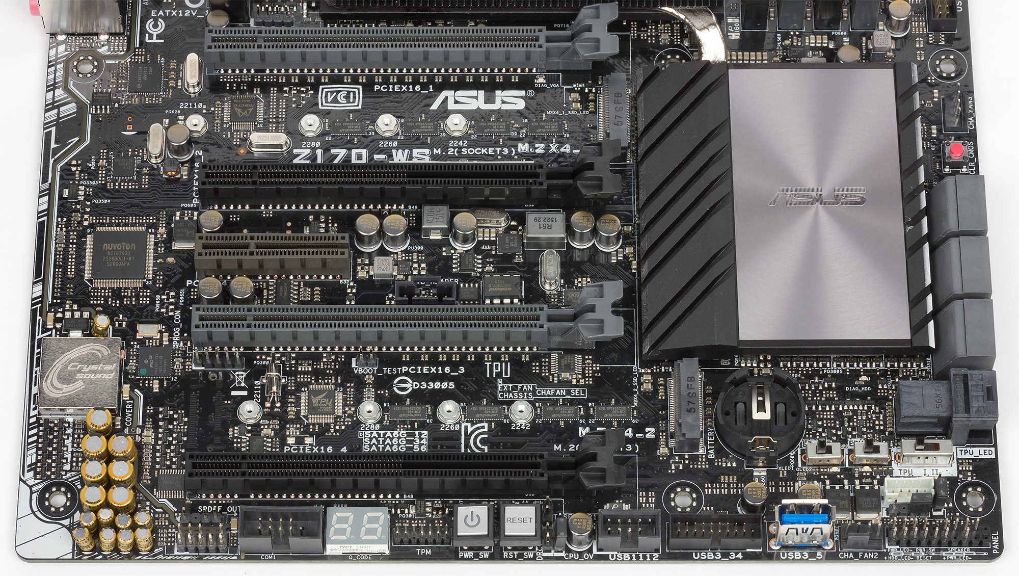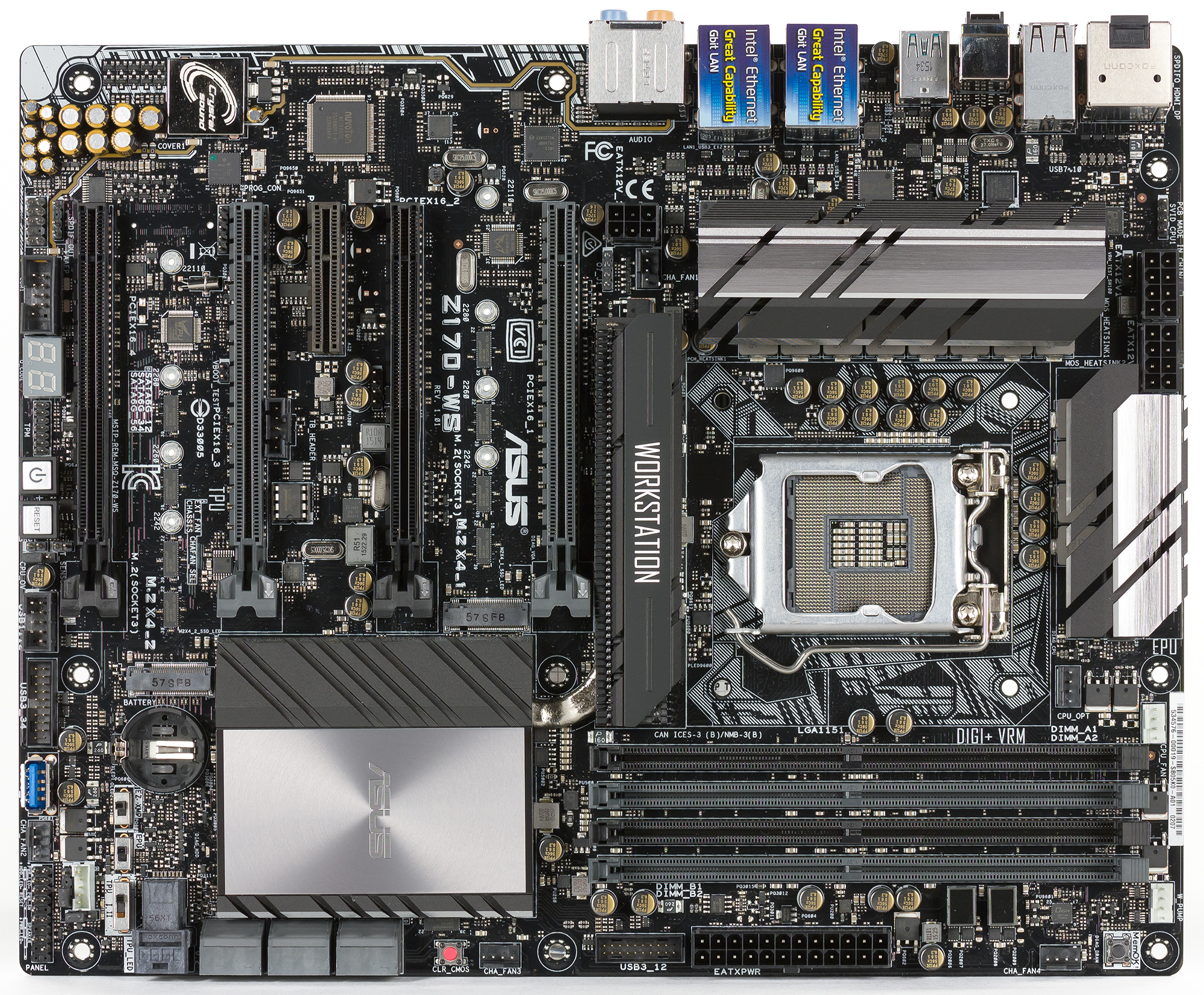 Ну а теперь посмотрим, как реализованы возможности чипсета Intel Z170 на плате Asus Z170-WS.