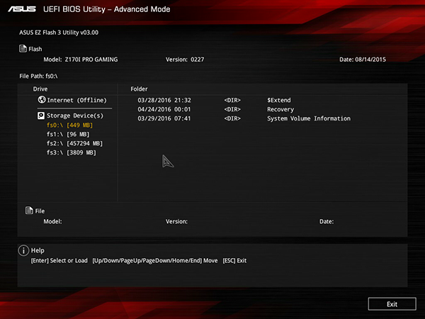 Как и на всех платах Asus, на плате Asus Z170I Pro Gaming имеется возможность очень просто обновить версию UEFI BIOS, используя для этого традиционную утилиту Asus EZ Flash 3, встроенную в BIOS.