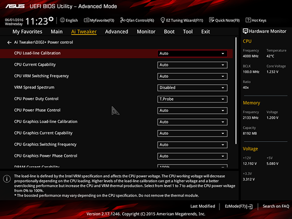 Ну и кроме того, можно настроить напряжение питания процессора, памяти и т. д., а также настроить режим работы регулятора напряжения питания.