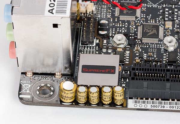 Одно из достоинств платы Asus Z170I Pro Gaming заключается в ее продвинутой аудиоподсистеме с маркетинговым названием SupremeFX 2015. На сайте компании Asus отмечается, что аудиотракт построен на базе специализированного аудиопроцессора SupremeFX Audio Processor. На плате это процессор закрыт металлическим кожухом, но под под этим кожухом скрывается хорошо известный аудиокодек Realtek ALC1150.
