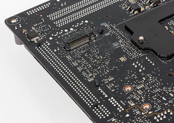 Разъем M.2 поддерживает устройства PCIe 3.0 x4 и SATA 6 Гбит/с, а для его реализации используется четыре чипсетных линии PCIe 3.0 и одна линия SATA 6 Гбит/с, что обеспечивает пропускную способность в 32 ГТ/с (при подключении PCIe 3.0 x4 устройств).