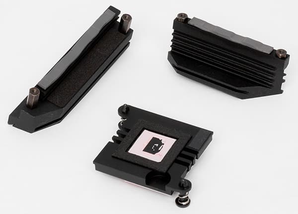 Для охлаждения различных тепловыделяющих компонентов на плате Asus Z170I Pro Gaming предусмотрено в совокупности три миниатюрных радиатора. Один отдельный радиатор установлен на чипсете, а еще два расположены по двум сторонам процессорного разъема и отводят тепло от MOSFET-транзисторов регулятора напряжения питания процессора.