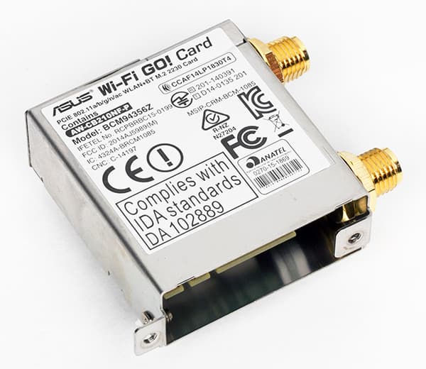 Кроме того, на плате имеется и встроенный модуль Asus WiFi Go!. Это двухдиапазонный модуль (2,4 и 5 ГГц) с поддержкой стандартов 802.11 a/b/g/n/ac и Bluetooth 4.1.