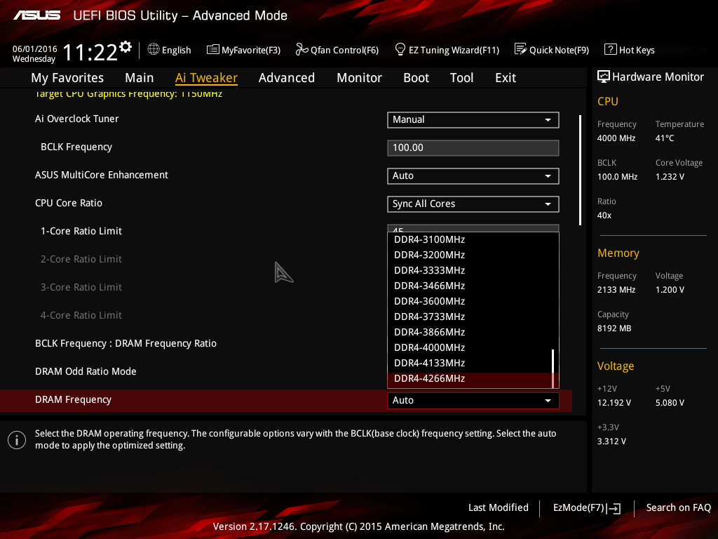 При частоте BCLK 100 МГц максимальная частота модулей памяти DDR4 может составлять 4266 МГц.