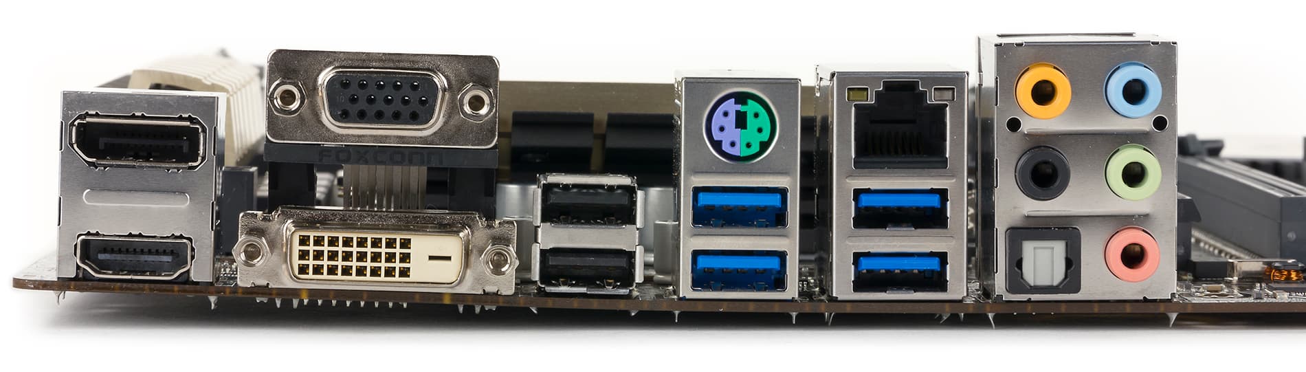| Разъемы на задней панели | 1 × HDMI 1 × DisplayPort 1 × DVI-D 1 × VGA 4 × USB 3.0 2 × USB 2.0 1 × RJ-45 1 × PS/2 1 × S/PDIF (оптический, выход) 5 × аудиоразъемов типа миниджек |