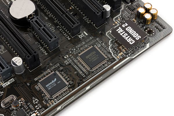 А вот ставший уже раритетным разъем PS/2 присутствует. И если с кнопкой питания все понятно, то вот наличие разъема PS/2 у многих пользователей вызывает недоумение. Действительно, зачем нужен такой разъем, если клавиатур и мышей с таким разъемом уже не найти в продаже? Тем не менее, наличие PS/2 оправдано для определенной категории пользователей: речь идет о любителях экстремального разгона. Дело в том, что при экстремальном разгоне USB-порты часто просто не работают, и единственный выход для таких случаев — использование разъема PS/2.