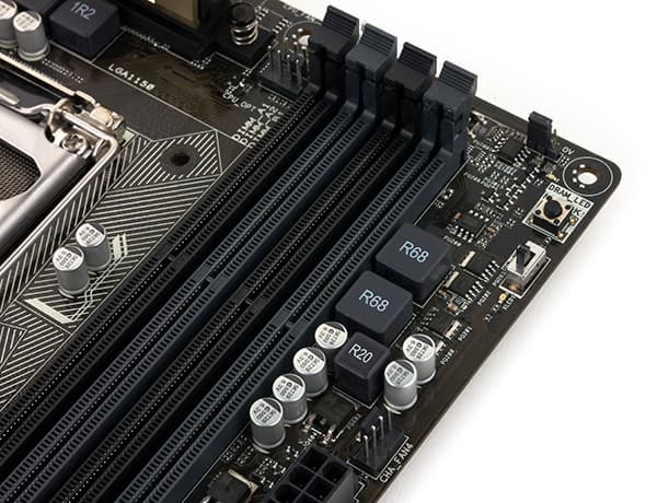 Аналогично, два слота PCI Express 2.0 x1 реализованы с использованием двух портов PCI Express 2.0 чипсета Intel Z97.