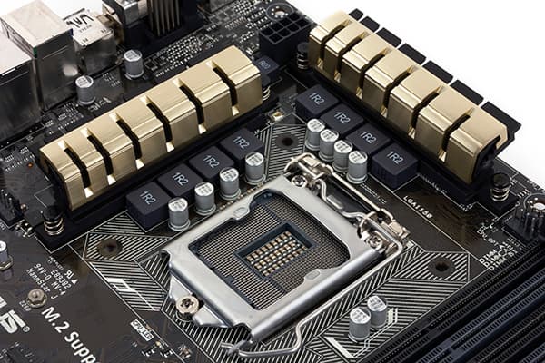 Для охлаждения MOSFET-транзисторов регулятора напряжения питания процессора на плате Asus Z97-A имеется два радиатора, которые расположены рядом с процессорным разъемом.