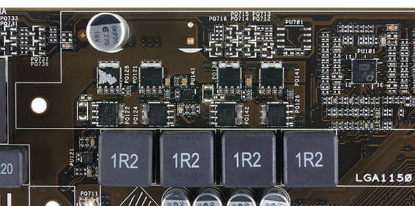 Регулятор напряжения питания процессора на плате Asus Z97-A является 8-канальным и основан на PWM-контроллере Digi+ VRM с маркировкой APS 1252. Сами каналы питания построены с использованием дискретных MOSFET-транзисторов.