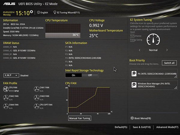 Режим EZ Mode предназначен для базовой конфигурации платы и контроля основных параметров, а тонкая настройка платы и разгон системы доступны только в режиме Advanced Mode.