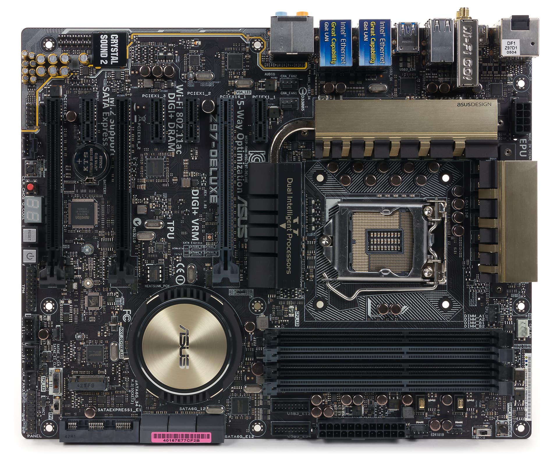 Плата Asus Z97-Deluxe основана на топовом чипсете Intel Z97 и, естественно, поддерживает процессоры Intel Core четвертого поколения (кодовое наименование Haswell) и обновленные процессоры Intel Core четвертого поколения (кодовое наименование Haswell Refresh) с разъемом LGA1150. Кроме того, по предварительной информации, эта плата будет также поддерживать и процессоры Intel Core пятого поколения, которые появятся в начале следующего года.