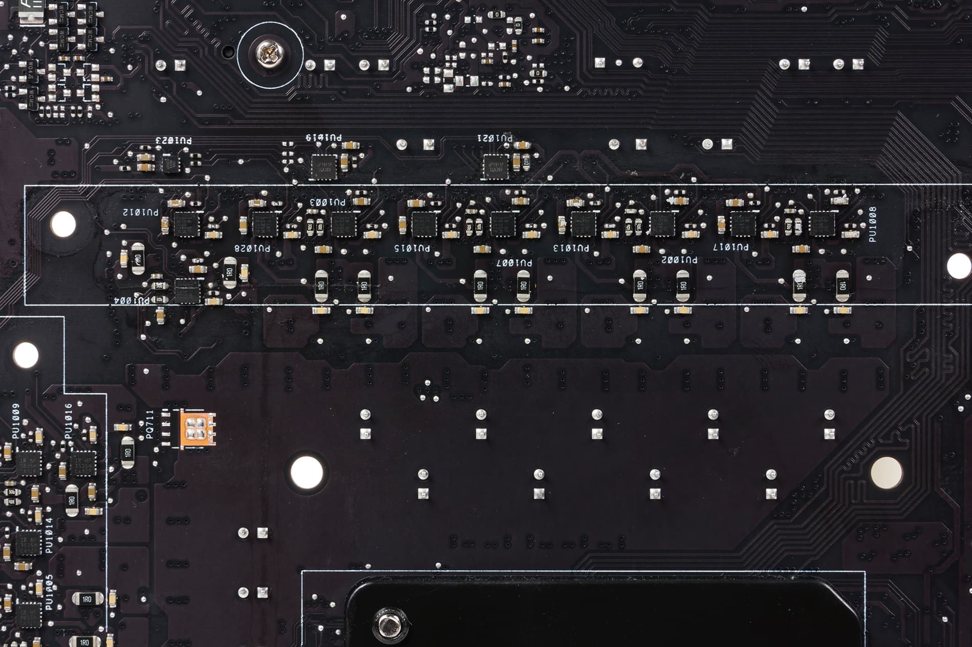 Помимо трех радиаторов имеются еще и две металлические пластины, расположенные на обратной стороне платы. Эти пластины закрывают драйверы IR3535.