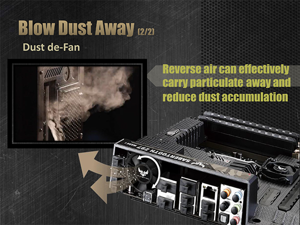 Еще одна интересная особенность — это функция Dust de-Fan, которая позволяет удалять пыль из-под защитного кожуха платы. Суть этой функции заключается в том, что вентилятор, расположенный на задней панели платы, при включении ПК некоторое время вращается в обратную сторону, выдувая пыль, после чего начинает вращаться в штатном режиме. Причем утилита Thermal Radar 2 позволяет настраивать интервал времени реверсного вращения вентилятора.