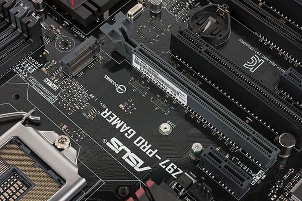 Также на плате Asus Z97-Pro Gamer имеется разъем M.2, поддержка которого реализована на уровне чипсета. Данный разъем позволяет подключать накопители с типоразмером 2260 и 2280. Этот разъем поддерживает как устройства SATA, так и устройства PCIe, а для реализации разъема M.2 задействуется два чипсетных порта PСI Express 2.0 и порт SATA 6 Гбит/с.