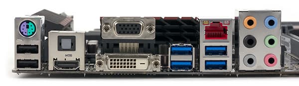 | Разъемы на задней панели | 1 × HDMI 1 × DVI-D 1 × VGA (D-Sub) 1 × S/PDIF (оптический, выход) 4 × USB 3.0 2 × USB 2.0 1 × RJ-45 6 × аудиоразъемов типа миниджек 1 × PS/2 |